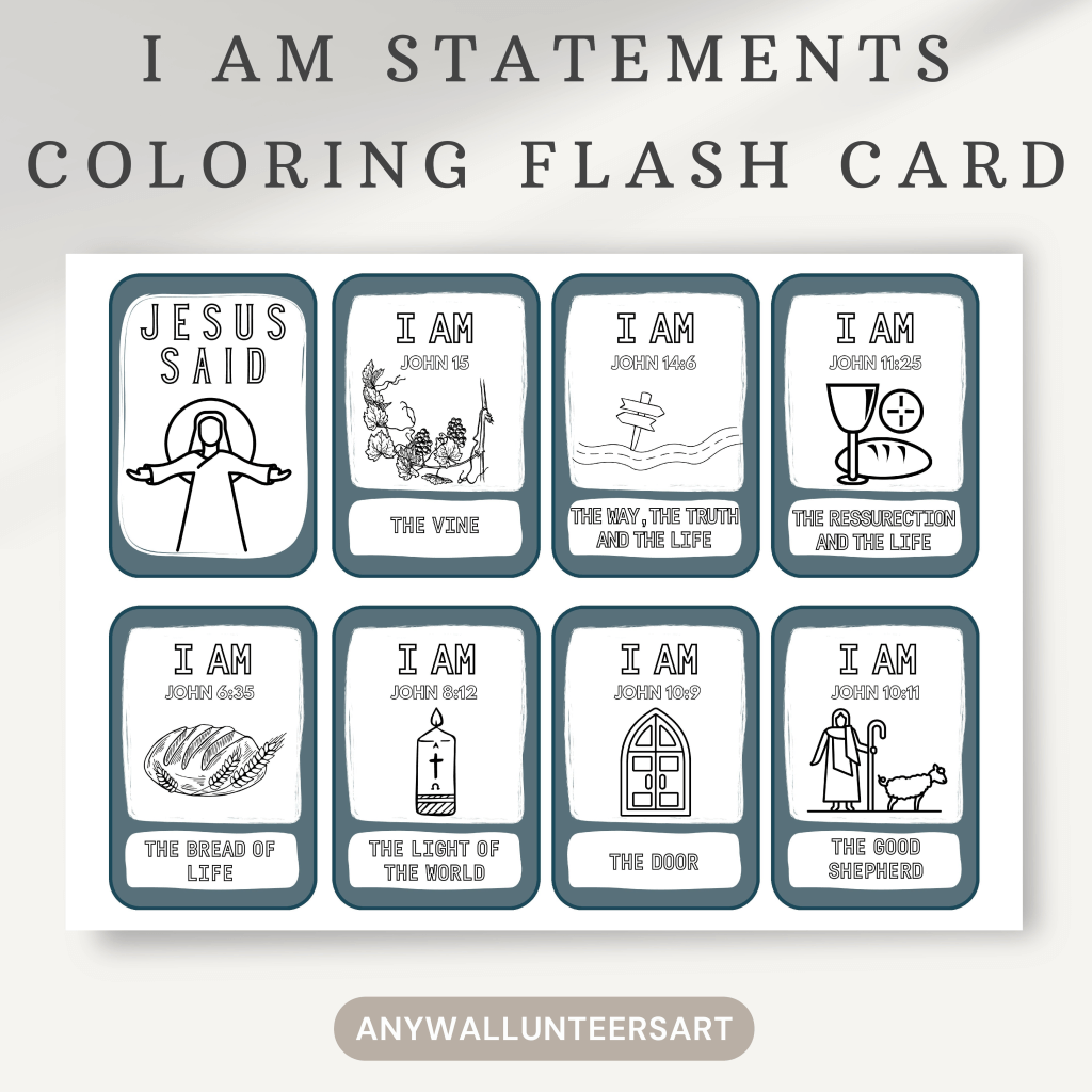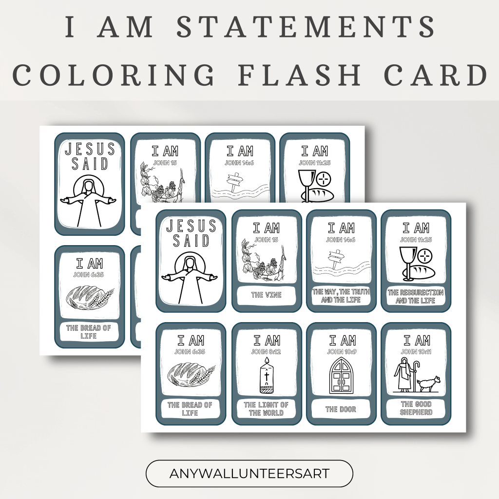 I Am Statements of Jesus Coloring Flash Card, Printable Sunday School Lesson, Kids Bible Study,Scripture Activity, Christian Printable Craft