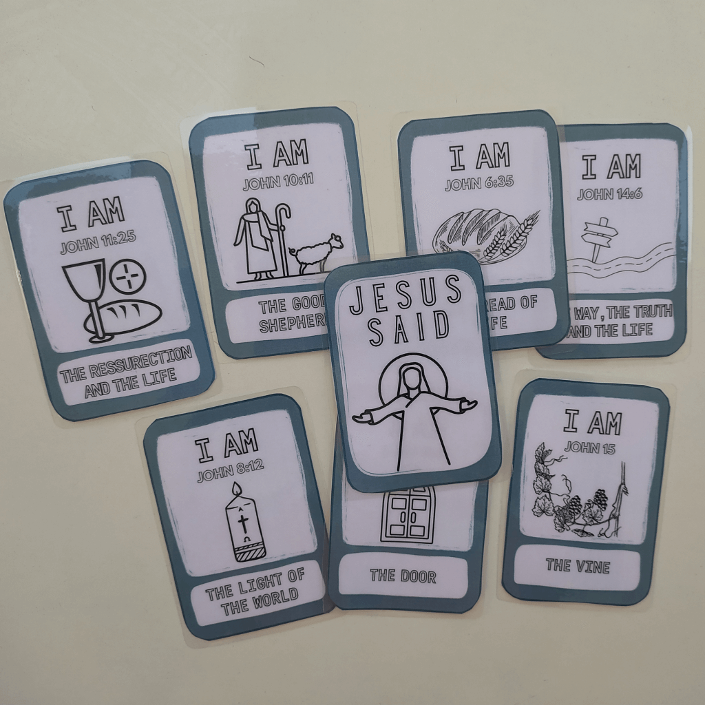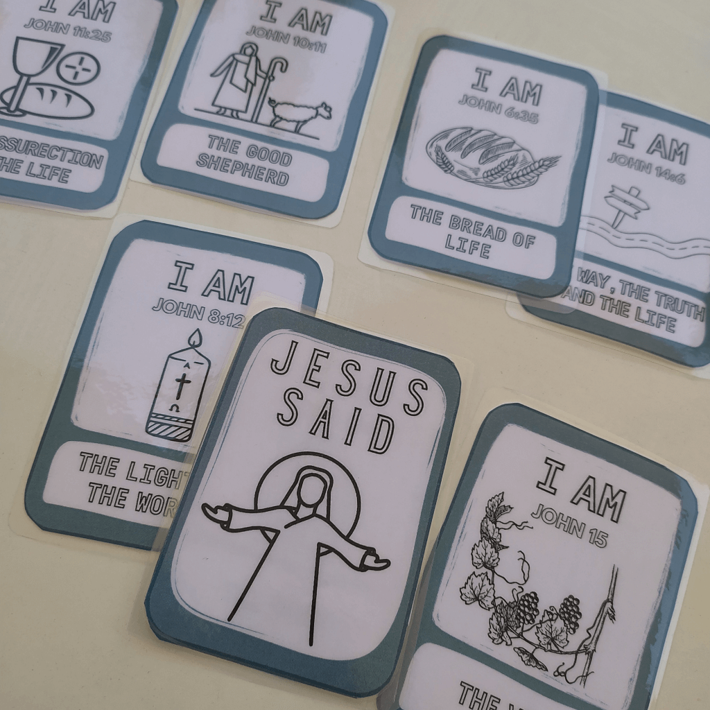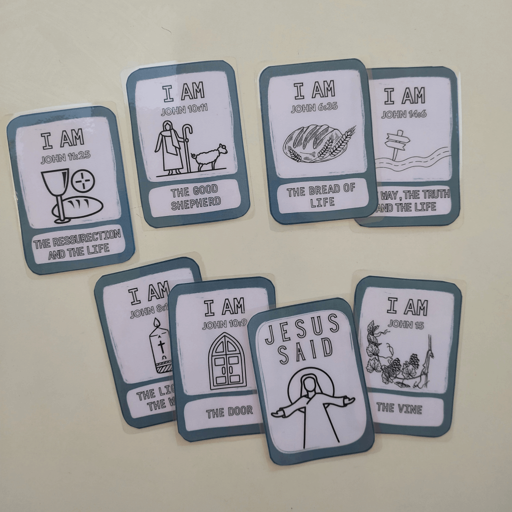 Introduce your child to the profound teachings of Jesus with our beautifully designed "I AmStatements of Jesus Flash Cards." Created with love and care, these flash cards are perfect forchildren to learn and internalize the powerful "I Am" statements from the Bible, fostering a strong, positive faith-based mindset from an early age.